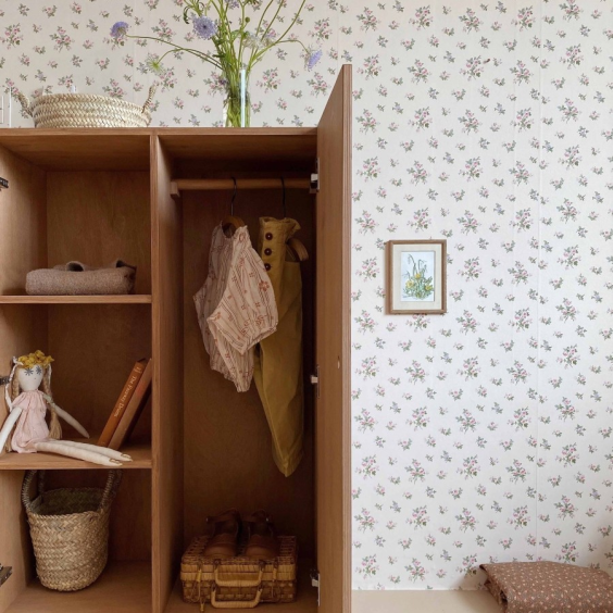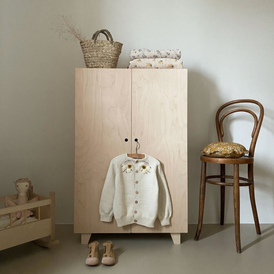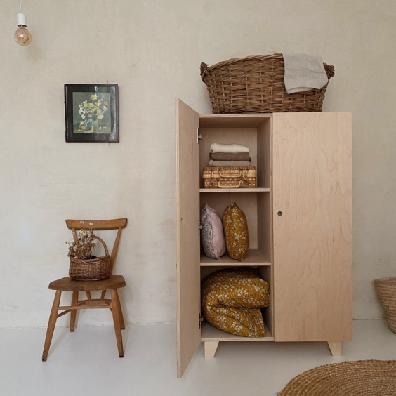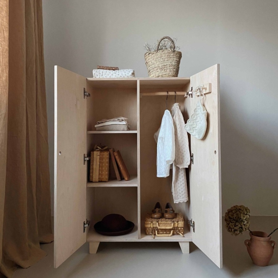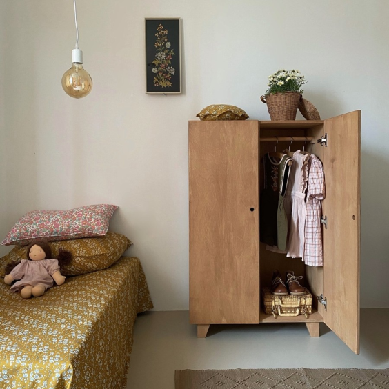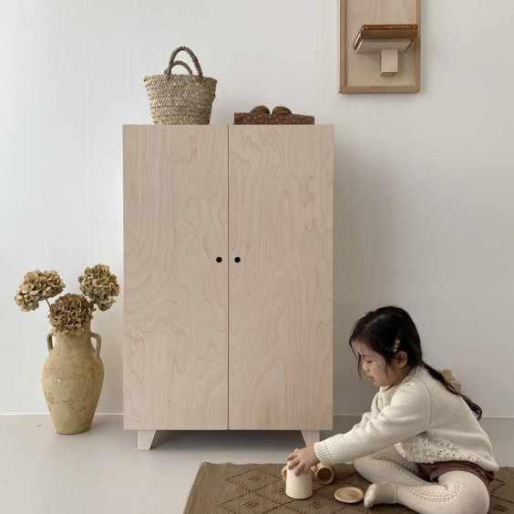 옷 말고도 장난감이나 책을 보관하셔도 되고, 폭이 깊어서 베딩 제품들을 보관해도 좋아요. 옷장 위에는 인형의 집이나 소품들을 올려두어 다양하게 연출할 수 있어 실용적이에요.