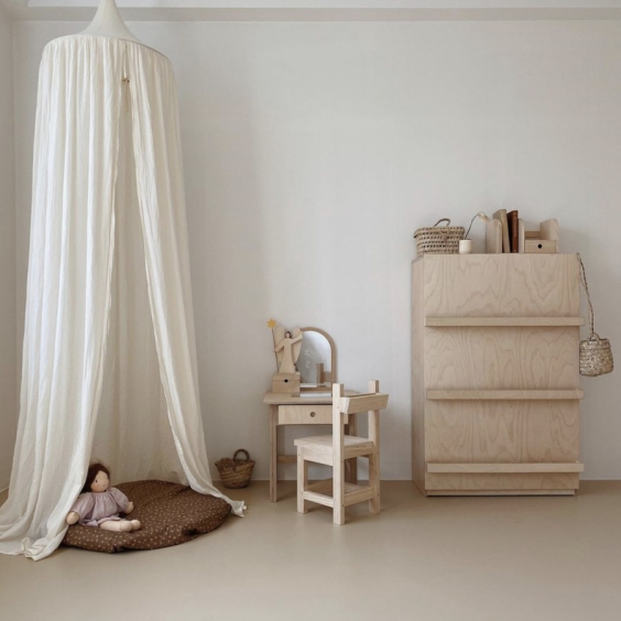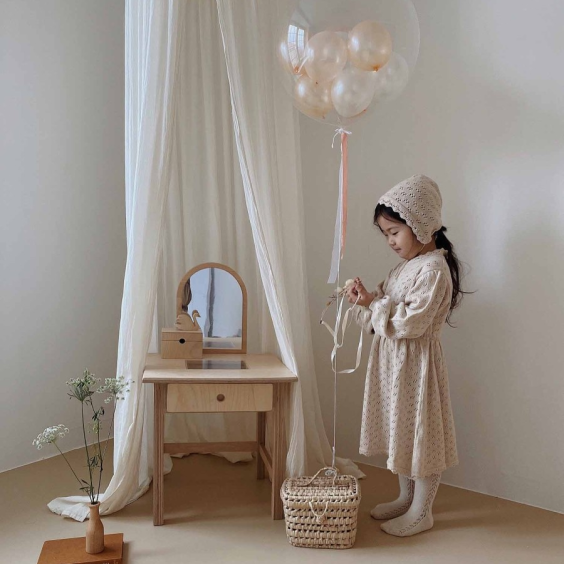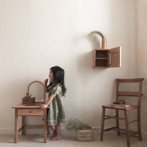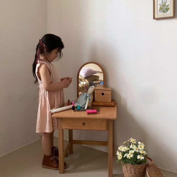 It is a dressing table that develops children's beautiful emotions, including a wooden jewelry box where they can collect and store precious things.