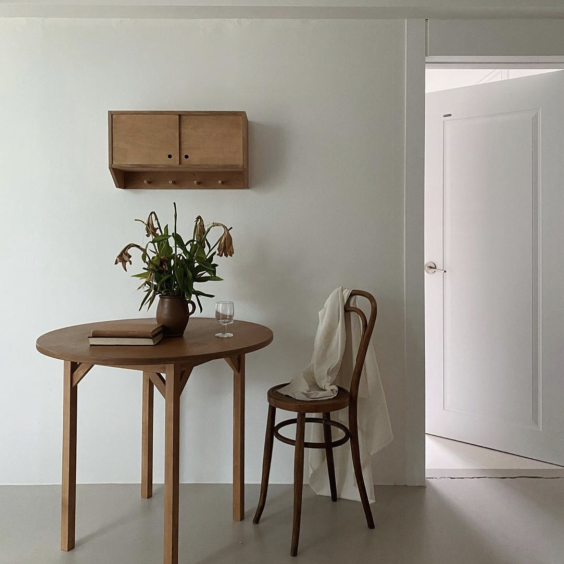 문을 포인트로 디자인했는데, 손잡이를 가운데로할 수도 있고, 양쪽 끝으로도 할 수 있어요. 한쪽을 오픈해두고 사용해도 너무 예쁜 선반이에요.